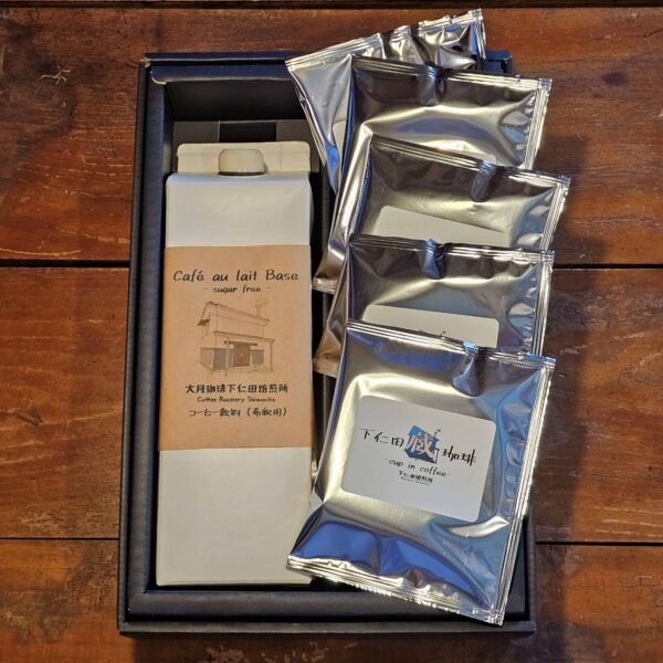 贈り物にぴったりなカフェオレベースとドリップバッグのセット。